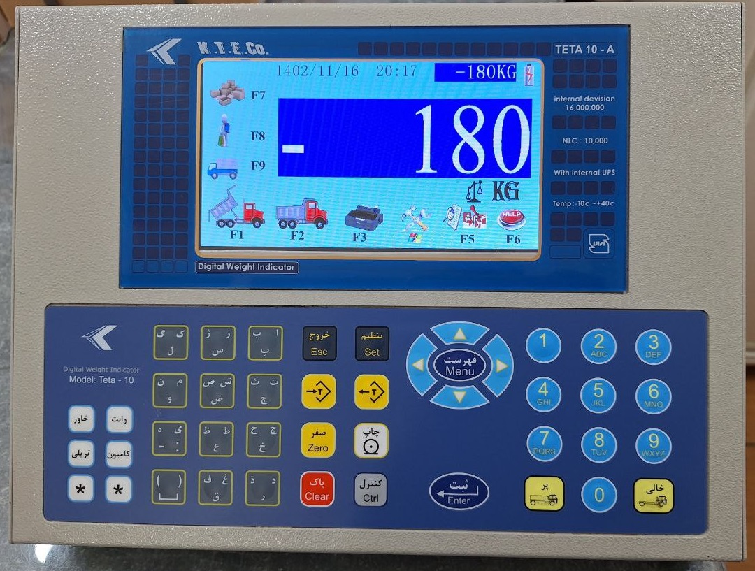 نمایشگر باسکول کارا توزین مدل Teta10-P با کیبرد فارسی و چاپگر داخلی تتا (Teta) ذخیره ۶۰۰۰۰ توزین پرو خالی ذخیره ۲۰۰ عدد کد مشتری (قابل تعریف توسط اپراتور) ذخیره ۳۰۰ عدد، خالی کامیونھای خاص (ذخیره نام راننده، زمان ذخیره وزن خالی و…) امکان وارد نمودن کامل پلاک ملی امکان تعریف نوع کالا و قیمت واحد ھر کالا توسط اپراتور امکان وارد نمودن نوع کالا و قیمت واحد ھر کالا در حین توزین امکان تعریف فرمت چاپ قبض باسکول به دلخواه تعریف حق توزین برای انواع خودرو شامل: تریلی، کامیون، خاور، نیسان و… و…
