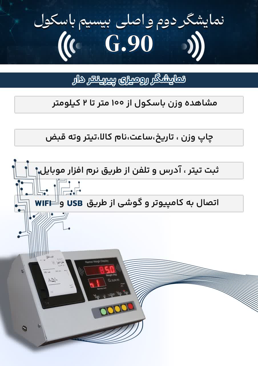 نمایشگر دوم بی سیم باسکول مشاهده وزن باسکول از 100 متر تا 2 کیلومتر اتصال به کامپیوتر جهت ثبت در نرم فزار با کابل USB فیش پرینتر داخلی